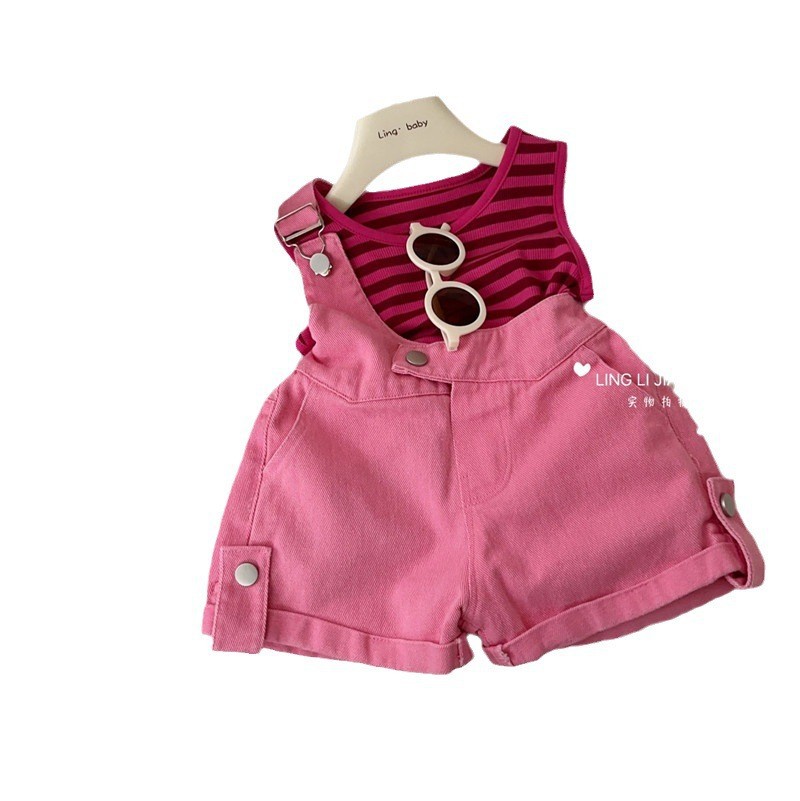 Tongxingyuan Girl Denim Suspenders Suit New Children's Baby Summer Striped Vest Suspenders Two-piece Set